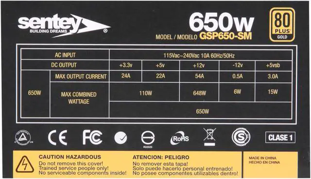 | Output | +3.3V@24A, +5V@22A, +12V@54A, -12V@0.5A, +5VSB@3.0A |