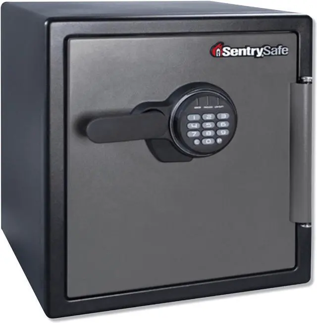 The SentrySafe SFW123ES 1.2 cu ft Electronic Fire Safe protects your documents, digital media and other valuables from a blaze, water and theft. The multi-position shelf, key rack, door tray and door pocket of this unit provide easy organization for your valuables, and it can be bolted to the floor for additional theft protection. This SentrySafe 1.2 cu ft electronic fire safe has a one-hour UL classified fire protection for documents and valuables, a one-hour ETL rating fire protection for media and an 8" ETL water-resistant rating for up to 24 hours.