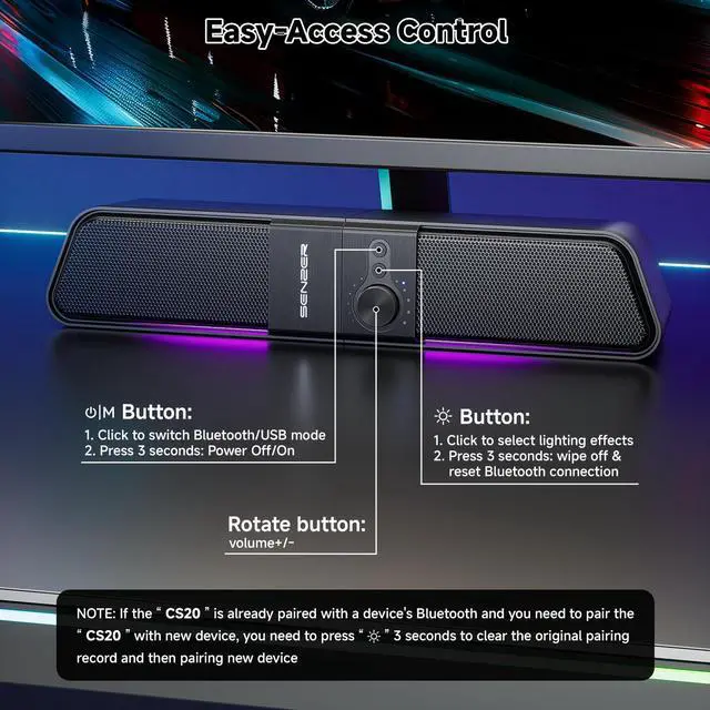 Sound bar with stylish appearance, excellent sound quality and convenient control to bring you a new desktop audio experience.