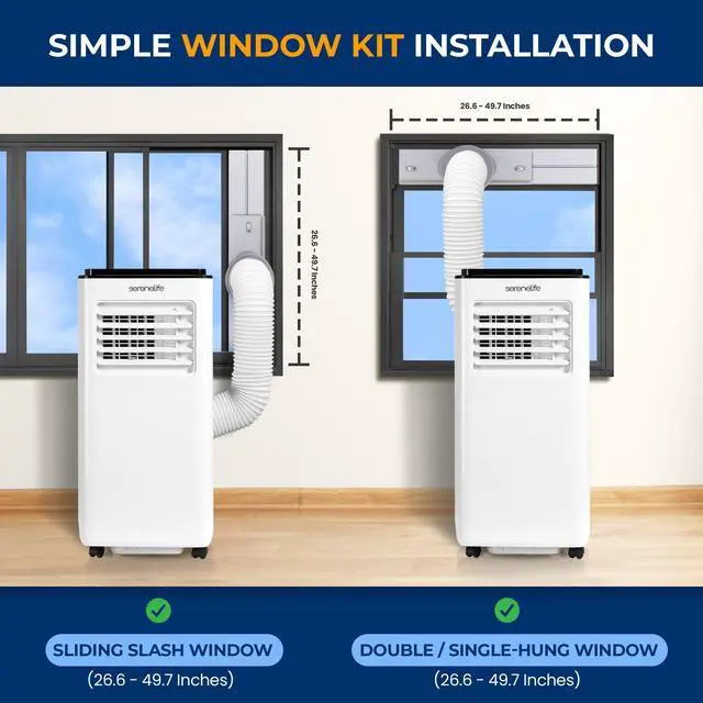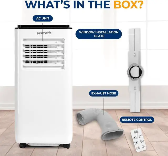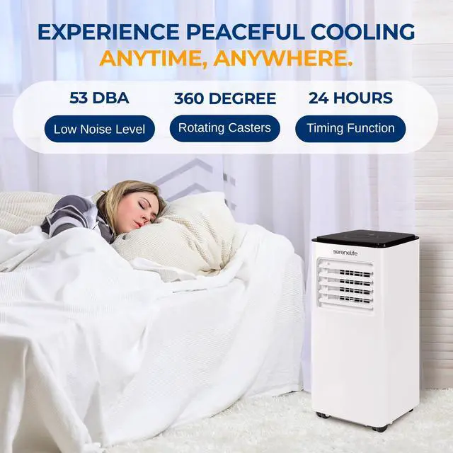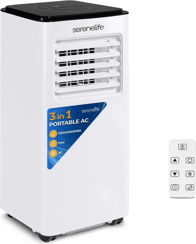 The SereneLife Portable Air Conditioner is a compact yet powerful cooling solution designed to enhance comfort in any space. With an 8, 000 BTU cooling capacity (ASHRAE), it efficiently cools rooms up to 300 square feet. This 3-in-1 unit features cooling, dehumidifying, and fan modes, making it perfect for year-round use. The built-in dehumidifier removes up to 0.9 liters of moisture per hour, keeping your environment dry and pleasant.