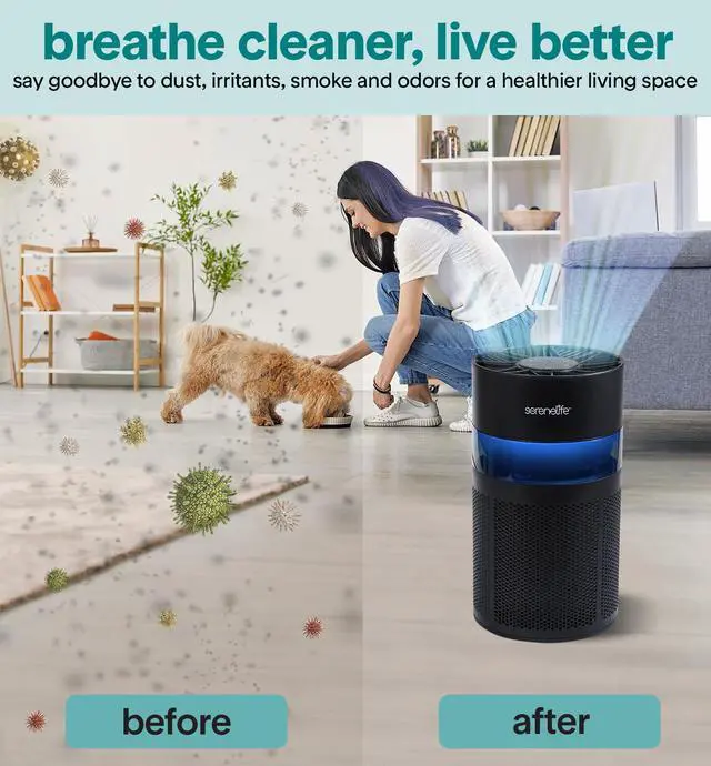 COMPACT DESIGN FOR VERSATILE USE - Compact, lightweight, and perfect for small spaces up to 63.8 square feet, this bedroom air purifier is stylish enough for any room. With an ambient light feature, it enhances your room while purifying the air.