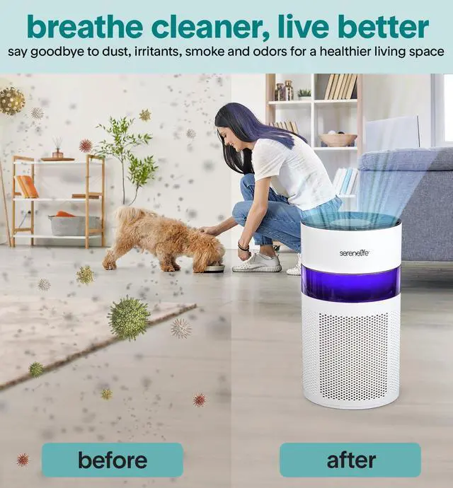 COMPACT DESIGN FOR VERSATILE USE - Compact, lightweight, and perfect for small spaces up to 63.8 square feet, this bedroom air purifier is stylish enough for any room. With an ambient light feature, it enhances your room while purifying the air.