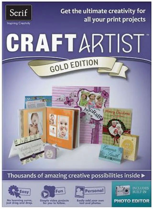 | Feature | CraftArtist Gold Edition is the all-in-one tool for creating any type of print project. You'll be amazed by how easy the software is to use thanks to its simple drag-and-drop function, plus the beautiful content included will surpass all your expectations! It's packed with templates, graphics and the incredible CraftArtist software – perfect for creating cards, invitations, scrapbooks and loads more at home. Designs can be personalized with unlimited pictures and text, plus there are craft tools and a built-in photo editor to help deliver high quality results that are guaranteed to impress friends and family. Features: Incredibly easy to use – just drag and drop to create any type of print project like scrapbooks, cards, invitations and more. Personalize every design with photos and text using one-click true-to-life tools like scissors and stencils Use the built-in photo editor to make your photos perfect. On-screen video tutorials help you to achieve amazing results. Fantastic value for money. |