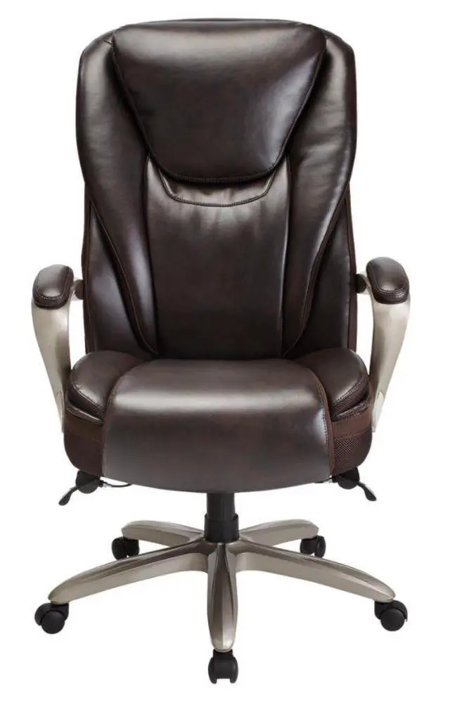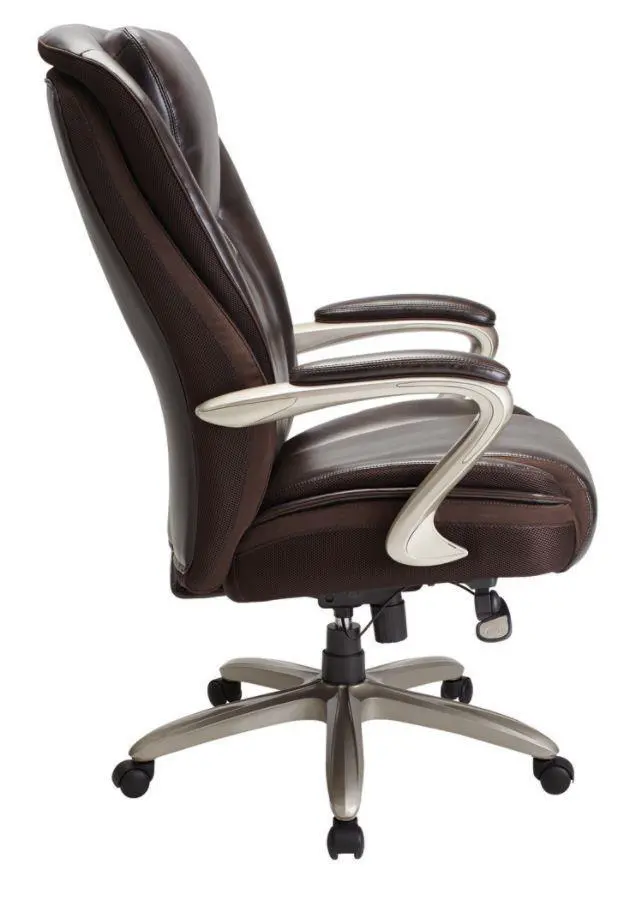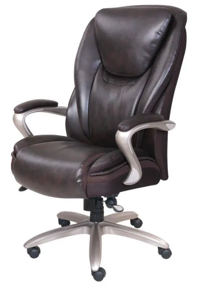 Anchor your home or corporate office with a chair that helps improve your posture and reduce body strain. This Smart Layers Hensley executive big tall chair cushions the body with deep, layered pillows, foam and individually wrapped ComfortCoils™ and helps make achieving an ideal seated position with plenty of legroom a snap thanks to the ergonomic height and tilt controls. Serta big and tall chairs bring plush, spacious comfort to your workspace. Made with 5 layers of foam and ComfortCoils. Contoured lumbar zone. Waterfall seat cushion. Ergonomic fingertip controls. Features a roasted chestnut/satin nickel chair finish. Eco-conscious choice - has one or more meaningful eco-attributes or eco-labels. GREENGUARD certified - certified for low chemical emissions: UL.COM/GG - UL 2818. Ranked in two tiers: Certified and Gold
