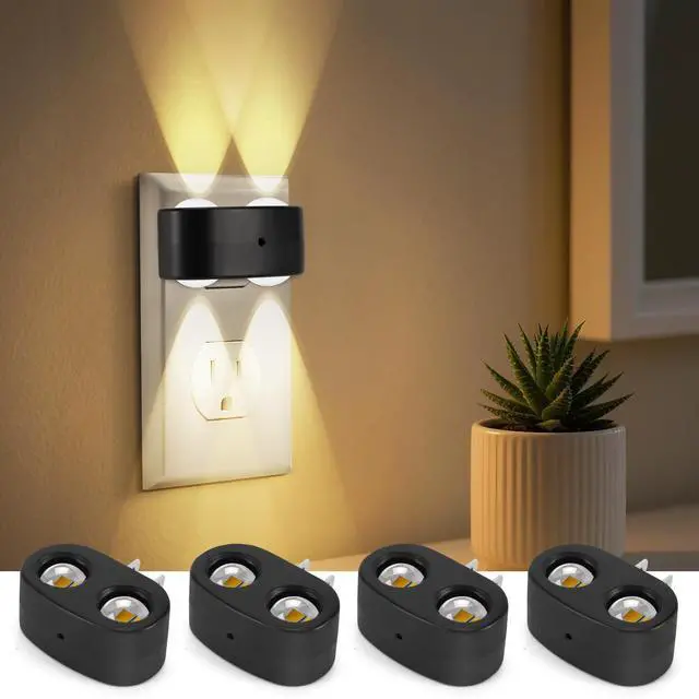 4-Pack LED Night Lights Plug into Wall, 2700K Soft White with Light Sensor, Ambient Lighting for Hallway, Bedroom, Bathroom, Nursery, Kitchen, Rotating Plug-in Night Light