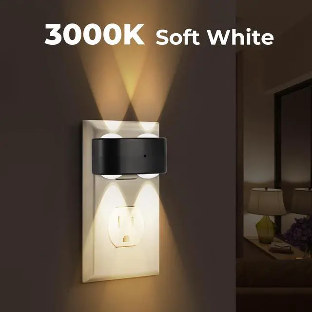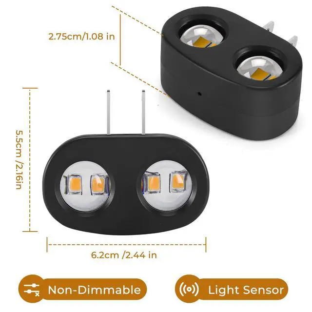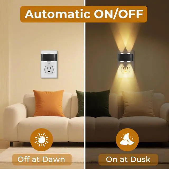 Smart Automatic Light Sensor: Equipped with a sensitive light sensor, these plug-in night lights automatically turn on at dusk and off at dawn, providing hands-free convenience and energy savings.
