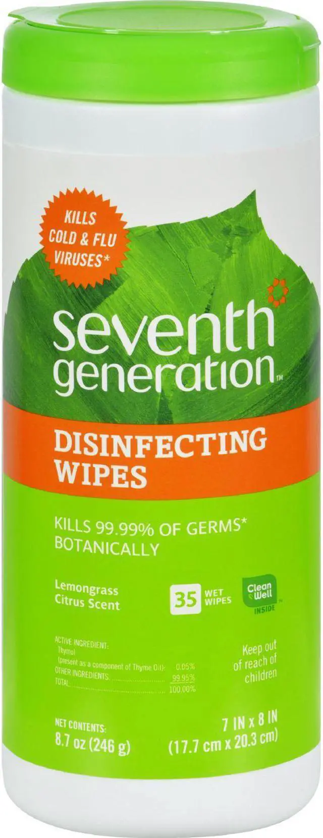 Disinfecting multi-surface wipes kill 99.99 percent of household germs botanically and are effective against cold and flu viruses. Specifically, treated wipes kill Influenza A viruses including H1N1, Rhinovirus (type 37, the Common Cold virus), Methicillin-resistant staphylococcus aureus (MRSA), staphylococcus aureus, salmonella enterica, and pseudomonas aeruginosa on hard, nonporous surfaces. Use to clean and disinfect in one easy step. Wipes are equipped with a patented disinfecting technology called CleanWell and are EPA-registered. They also deodorize and effectively control odors. No rinsing or wiping is required, even on food contact surfaces.