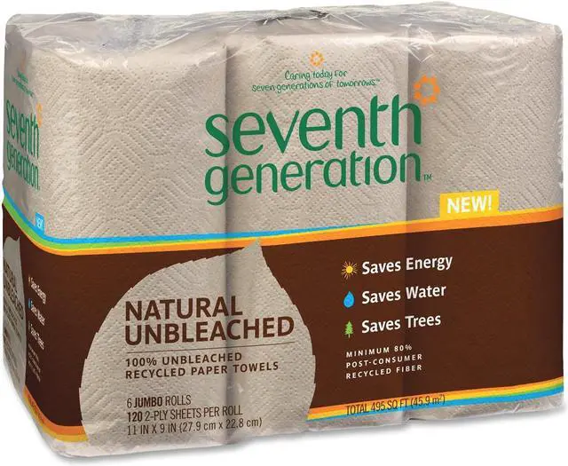Because fewer natural resources are consumed during manufacturing, natural unbleached recycled paper towels are Seventh Generation’s most sustainable yet. Processed without chlorine with no added dyes or fragrance. Full 11" x 9" sheet size. Two ply for absorbency and strength.