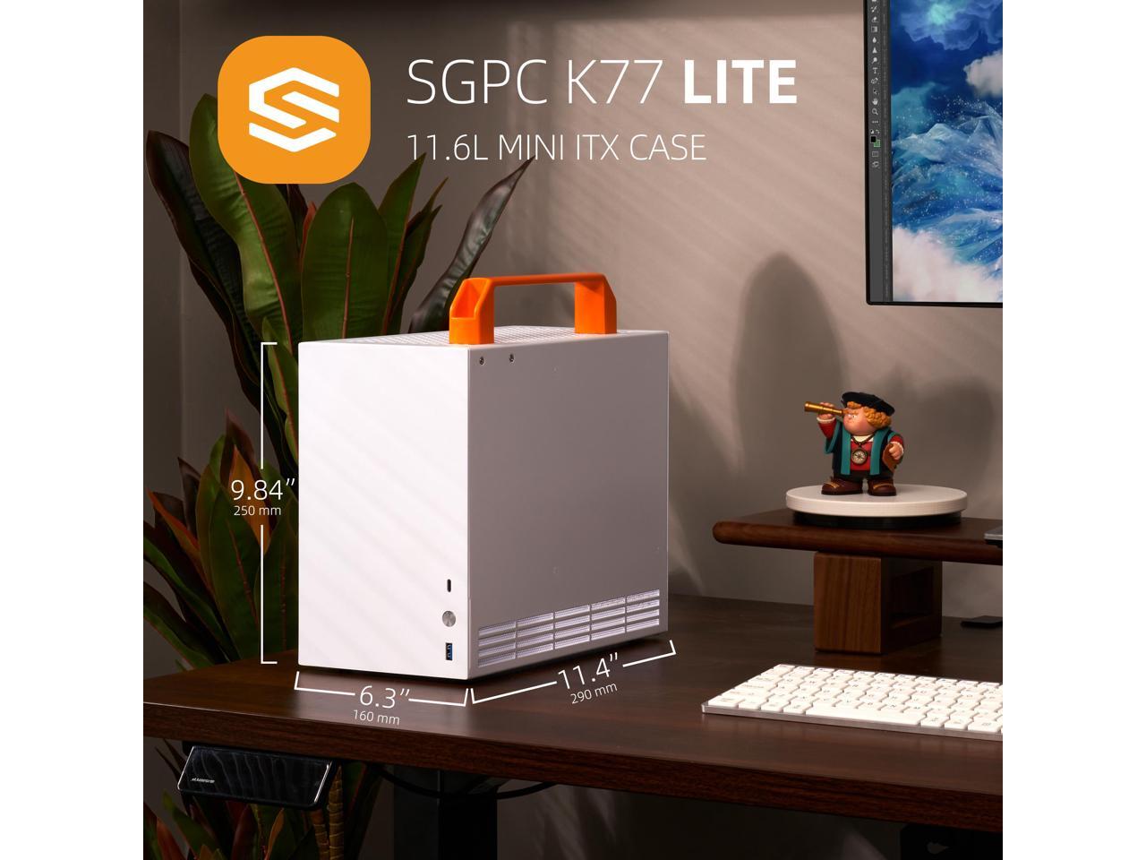 SGPC K77 lite Compact ITX Case/Small White Chassis with Tempered Glass Side Panels / 11.6L / Compatible with ITX/DTX Motherboard and SFX/ATX Power Supply