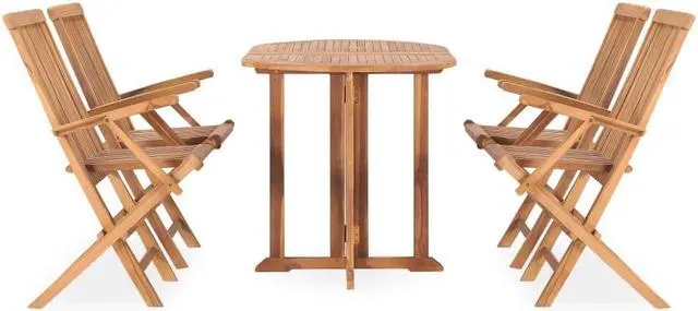 This elegant solid teak wood dining set is designed to be the focal point of your garden, terrace or patio. This piece of teak furniture, constructed from extremely durable teak hardwood, is seasoned, kiln-dried and fine sanded to give a very smooth appearance. Teak wood is known for its exceptional strength and weather resistance, making it far more suitable for patio furniture than any other kind of wood. Teak wood is the perfect choice if you want to purchase a long-lasting piece of patio furniture. The dinner table and chairs can be folded to save space when not in use.