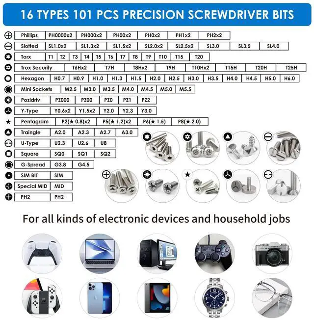 101 replaceable CR-V steel screwdriver bits are perfect for your professional or home repair needs!