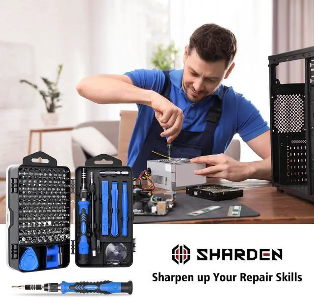 The SHARDEN 122 in 1 precision screwdriver kit offers 101 replaceable screwdriver bits and 21 pieces of necessary tools