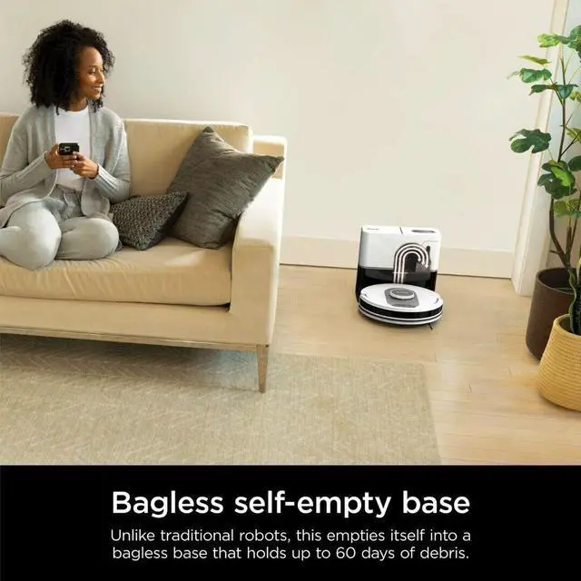 Self-Emptying: Bagless base holds up to 60 days of debris, eliminating the need for daily emptying and additional disposal bags.