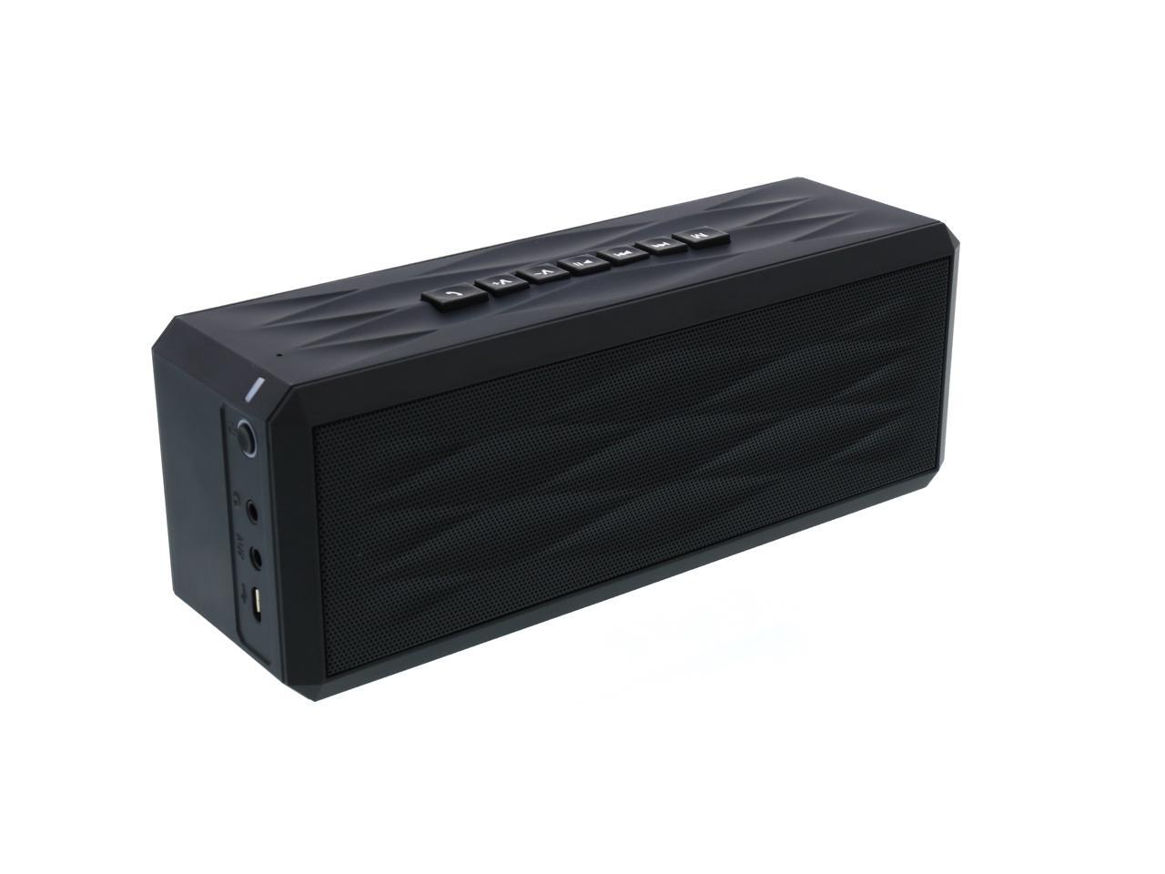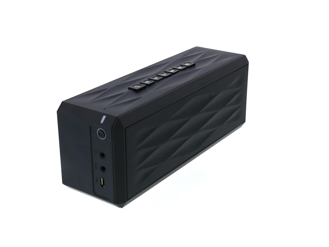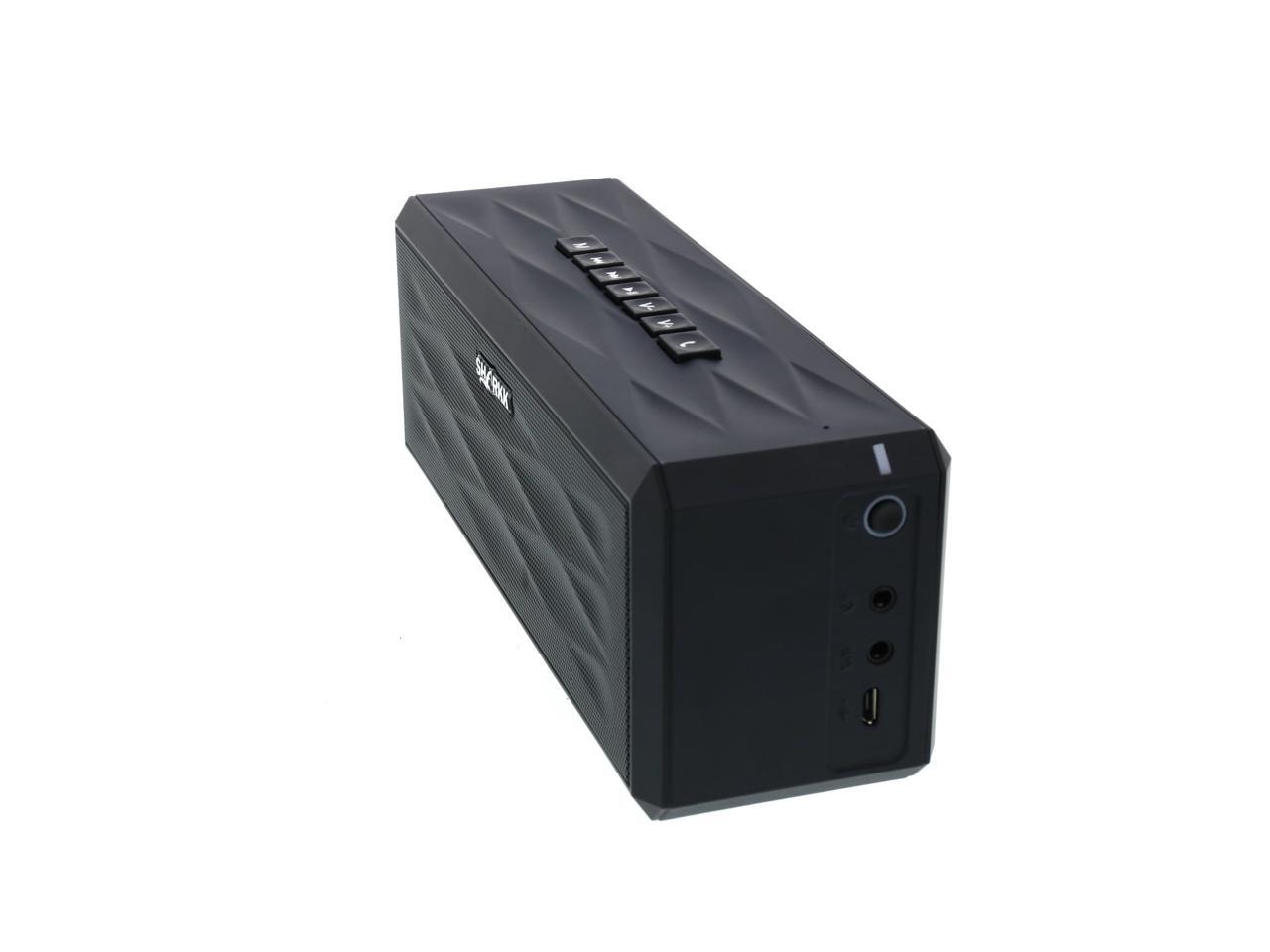 Raise the roof with the powerful 10W SHARKK Boombox Speaker. With the rechargeable, high capacity 4400mAh polymer Li-ion battery, you can rock out with up to 18 hours consecutive playing time! Need to make a call? No problem! The built in HQ Mic allows you to easily make and receive calls right from your speaker! Among the supported media connections are: AUX Cable, Bluetooth 4.0 and NFC, with "siri" function.