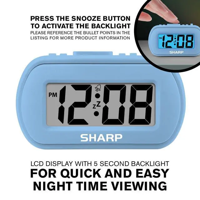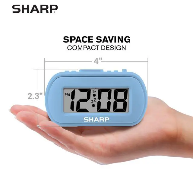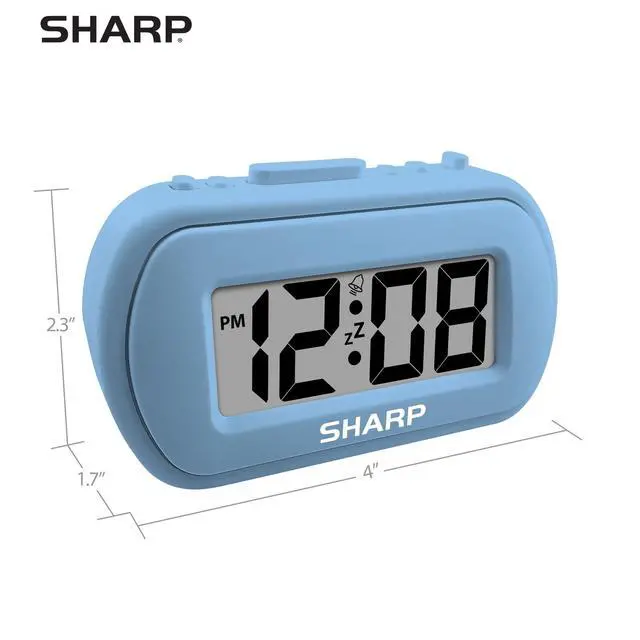 SHARP Digital Alarm Clock Battery Powered with Rubber Finish Case