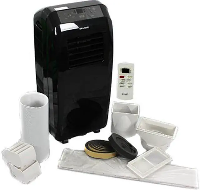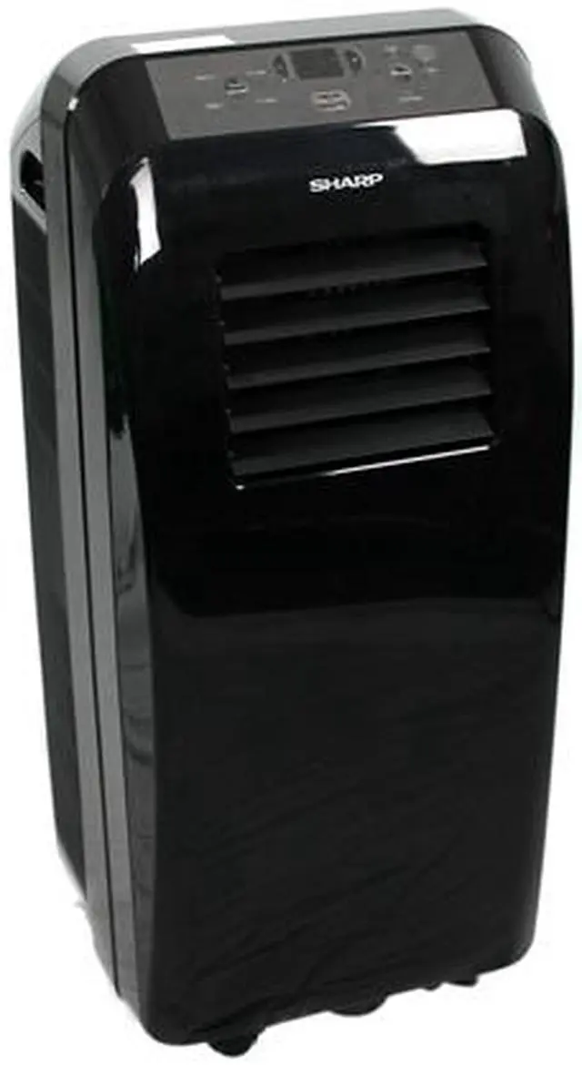 | Description | Stay cool during the hot summer months with the refurbished Sharp 10,000BTU Portable Air Conditioner that is designed to keep up to 410 sq ft of room space cool and comfortable. It boasts a digital control panel and remote control for maximum user control; and 3-speed fan and 2-way air direction spreads air evenly into the room. Auto cool system allows you to set thermostat to maintain a preferred temperature. Dehumidification function removes up to 2 pints of moisture from the air per hour. EZ glide casters allow for easy room to room portability. Comes complete with window kit compatible with double hung or slider type windows. - 3-in-1 Portable air conditioner - Refurbished - 10,000BTU cooling capacity - Unit color: black - Slim, compact design - Cools up to a 410 sq ft room - LCD display panel with digital touch sensor - Automatic 24 hour on/off timer allows for flexible cooling schedule - Dehumidification function mixes cool dry air with the warm air to keep you comfortable - Self evaporative, bucketless system - Remote control for easy temperature adjustment - Washable air filter - Unit must be vented to outside with window vent kit included - Compatible with double hung or slider type windows only, not casement windows - Window kit includes insect and rain guards - ETL listed |