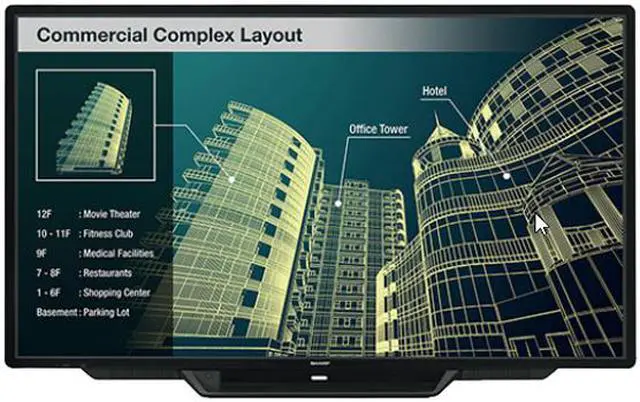 - SHARP Display Connect Software allows for easy connectivity with mobile devices.
