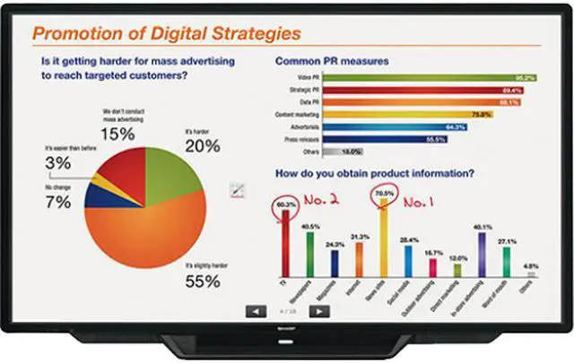 The PN-L803CA display lets you capture ideas at the moment of creation. Recognizing up to 10 touch points, it allows up to four people to write at the same time with a finger or touch pen. Each pen boasts a thin 3.5 mm tip that makes it easier to add detailed notes that remain legible when printed out.