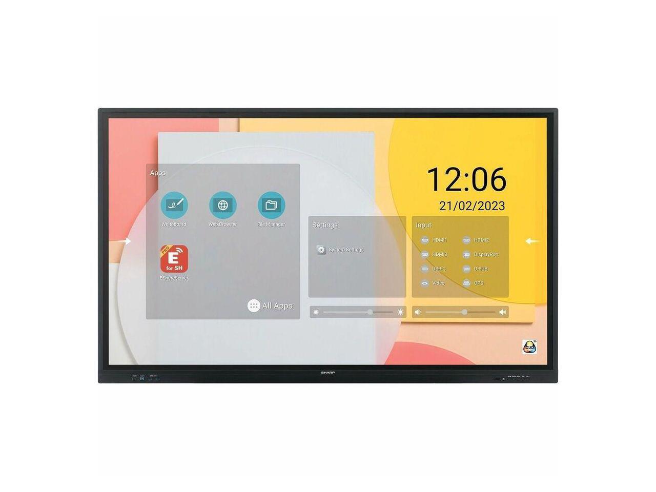 Sharp NEC Display 65" Class AQUOS BOARD - LCD Cortex A55 - 4 GB SDRAM - Infrared (IrDA) - Touchscreen - 16:9 Aspect Ratio - 3840 x 2160 - Direct LED - 450 Nit - 1,200:1 Contrast Ratio - 2160p (PN-LC6)