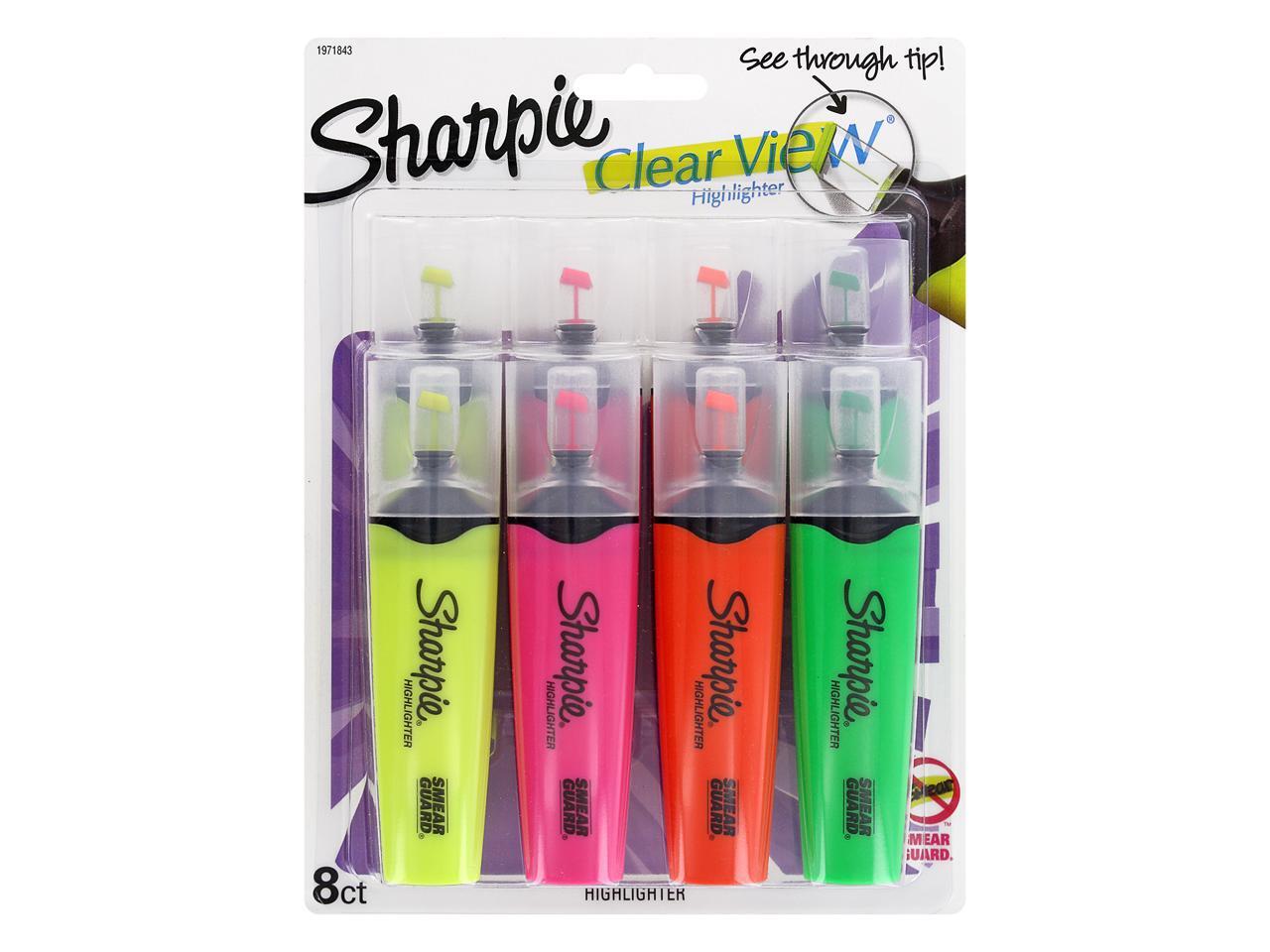 Sharpie 1971843 Clear View Highlighters, Chisel Tip, Assorted Fluorescent, 8/Pack