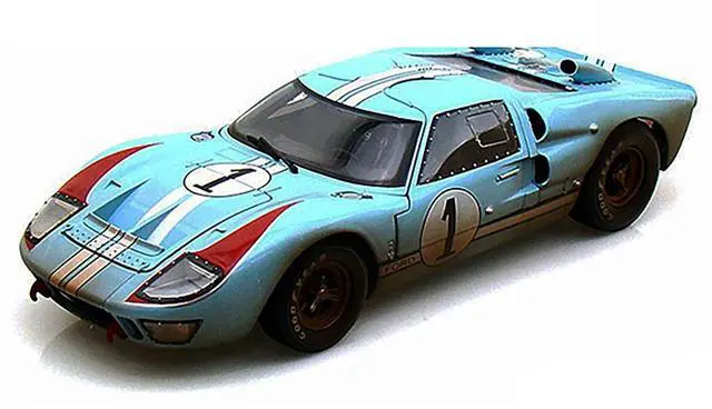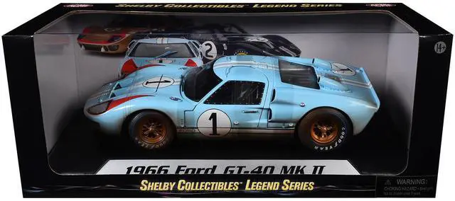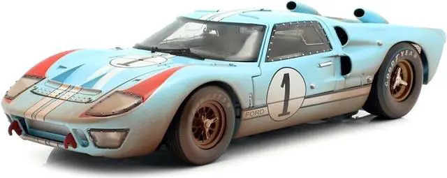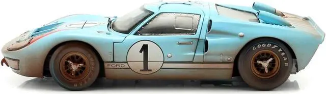 Brand new 1/18 scale diecast car model of 1966 Ford GT-40 MK II #1 Light Blue Miles - Hulme Le Mans (Dirty Version) die cast model car by Shelby Collectibles.