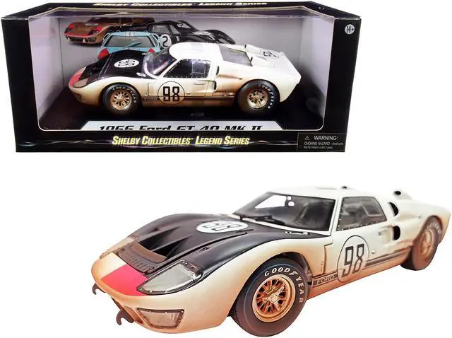 Brand new 1/18 scale diecast car model of 1966 Ford GT-40 MK II #98 White with Black Hood After Race (Dirty Version) die cast model car by Shelby Collectibles.