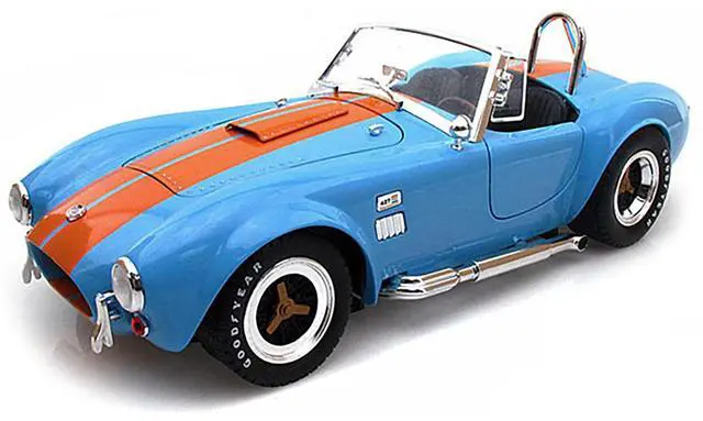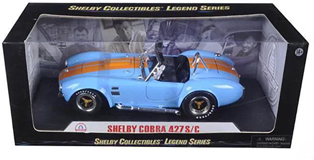 Brand new 1:18 scale diecast model of 1965 Shelby Cobra 427 S/C Blue With Orange Stripes die cast model car by Shelby Collectibles.
