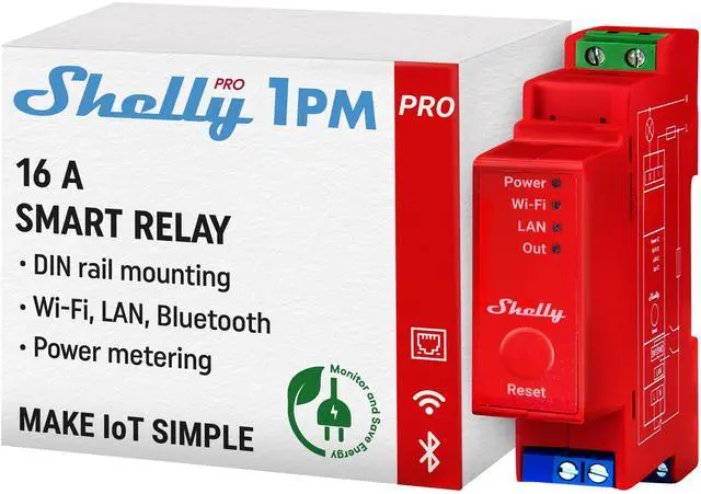 Shelly Pro 1PM is a one-phase, 1-channel relay supporting up to 16A. Equipped with an integrated power meter, Shelly Pro 1PM allows users to measure the precise power consumption of all automated lights or heavier appliances. Different types of actions, scenarios, and schedules can be set to sync your environment to your daily activities or business needs. Additionally, Shelly Pro 1PM has scripting functionalities for custom automation scenes based on external data or various occurrences.
