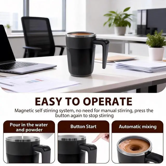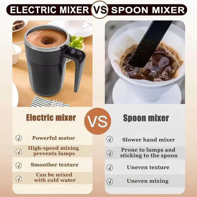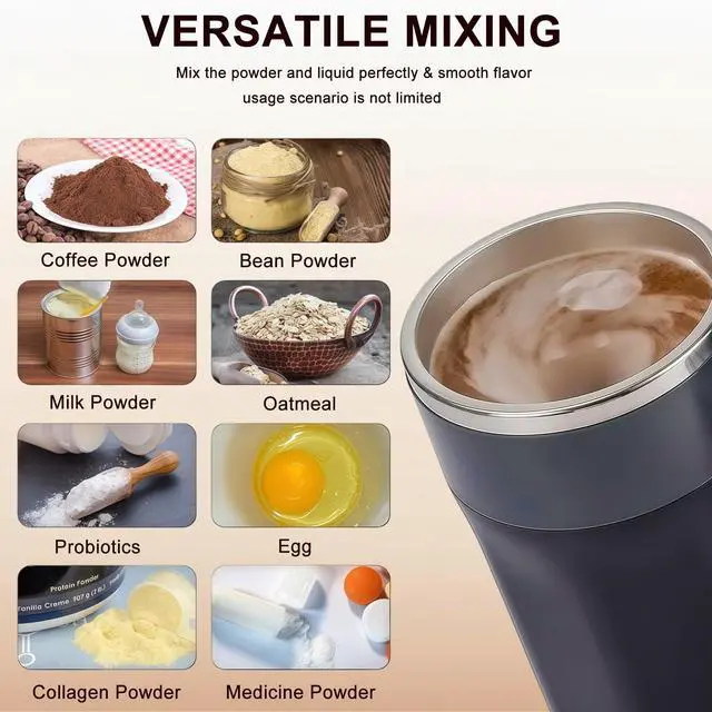 2.Press to stir! Mix coffee, eggs, tea ormilk in seconds.