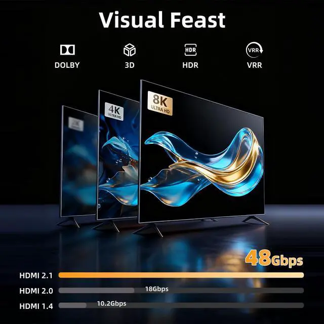 | 48Gbps (HDMI 2.1) | 18Gbps (HDMI 2.0) | 18Gbps (HDMI 2.0) | 48Gbps (HDMI 2.1) | 48Gbps (HDMI 2.1) |