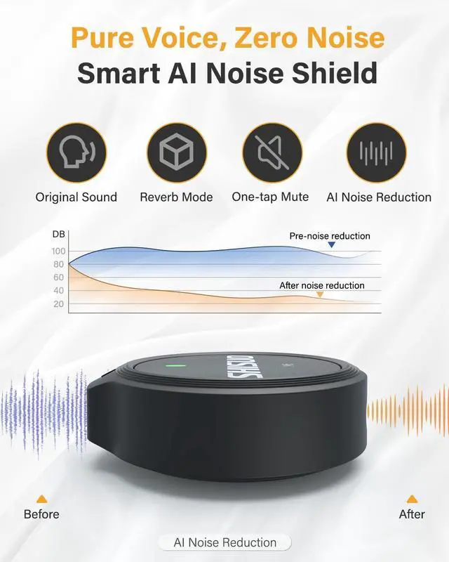 It features 4 Smart Modes: It powers on in AI Noise Cancellation (Default). Click to switch to Original Sound, ASMR, or Mute Mode. This versatility allows you to adapt instantly from noisy streets to quiet, immersive recordings.