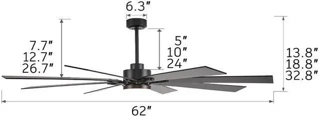 Easily control fan speeds, light settings, and operating time with the included remote control. The timer function allows for scheduled operation, adding everyday convenience.