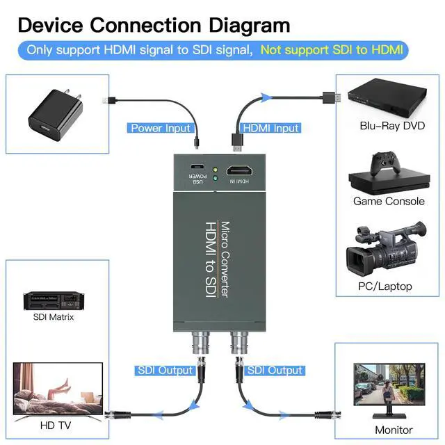 3. HDMI to SDI Converter only Converters from HDMI signal to SDI , do NOT support SDI to HDMI.