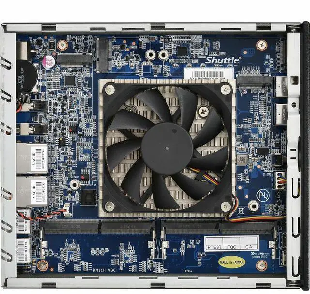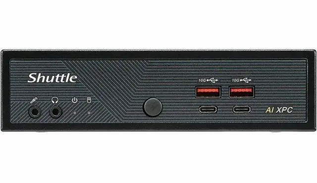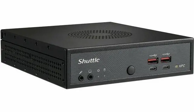 VERSATILE 1.3 -LITRE AI PC WITH EXCEPTIONAL CONNECTIVITYThe Shuttle DN11H-series AI-PC is a 1.3 -liter barebone PC powered by an Intel (r) Core™ Ultra series processor, delivering significantly upgraded performance from everyday tasks to business applications. This AI-focused platform integrates CPU, GPU, and a specialized NPU designed to accelerate neural network computations, offering up to 34 TOPS of total system performance to support complex AI workloads. The DN11H stands out with its exceptional connectivity, including four 2.5G LAN ports for high-bandwidth networking, eight high-speed USB-C/USB-A ports, four ports for UHD-displays and three M.