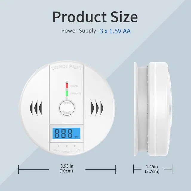 Battery Supply:3* AA 1 .5V batteries;Package Includes 1 x Carbon Monoxide Detectors ,2 x Expansion Screws ,2 x Anchor Plugs,1 x User Manual