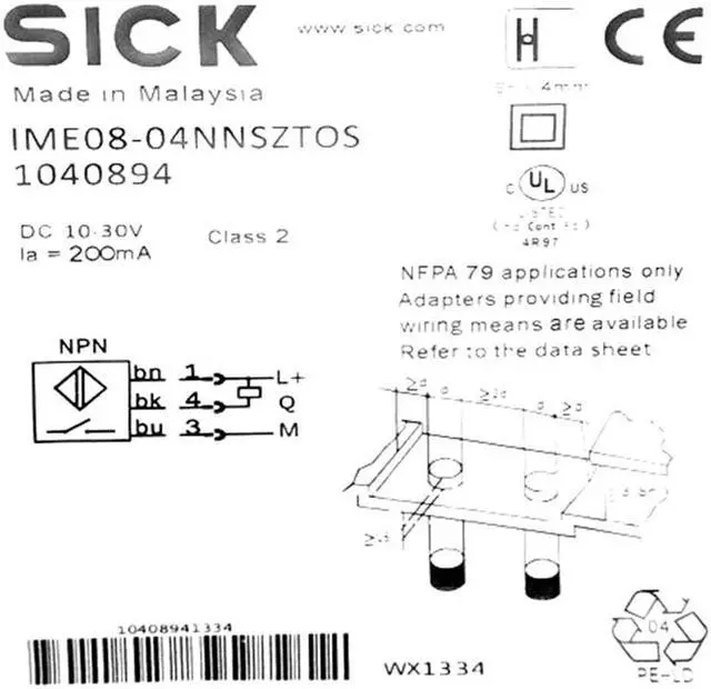Sensing range Sn 4 mm