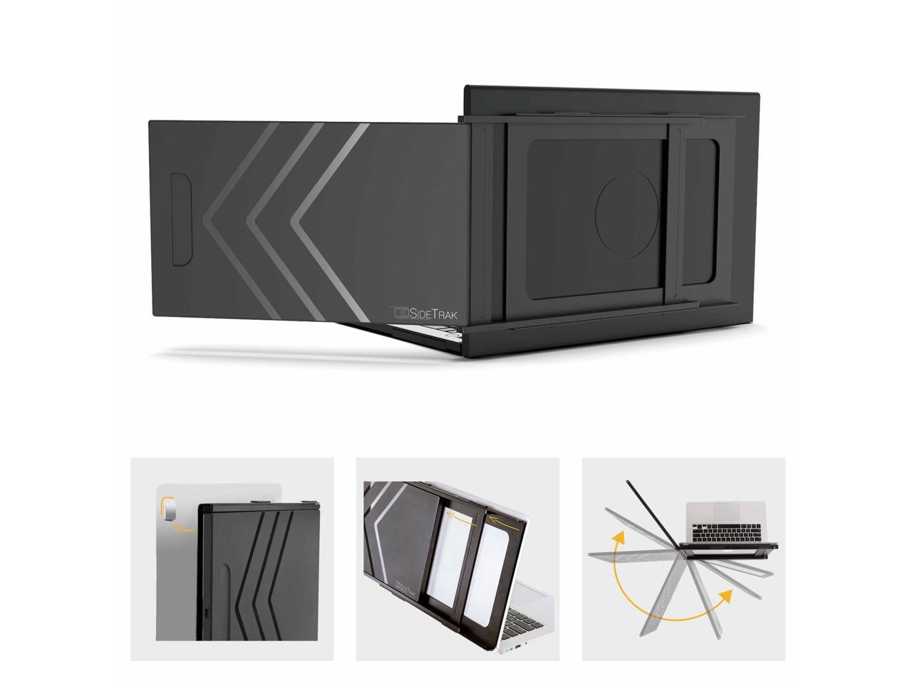 MAKE YOUR LAPTOP DUAL SCREEN >>SideTrak Slide is a 12.5” FHD IPS portable monitor that securely attaches to the back of your laptop with device-safe metal plates.