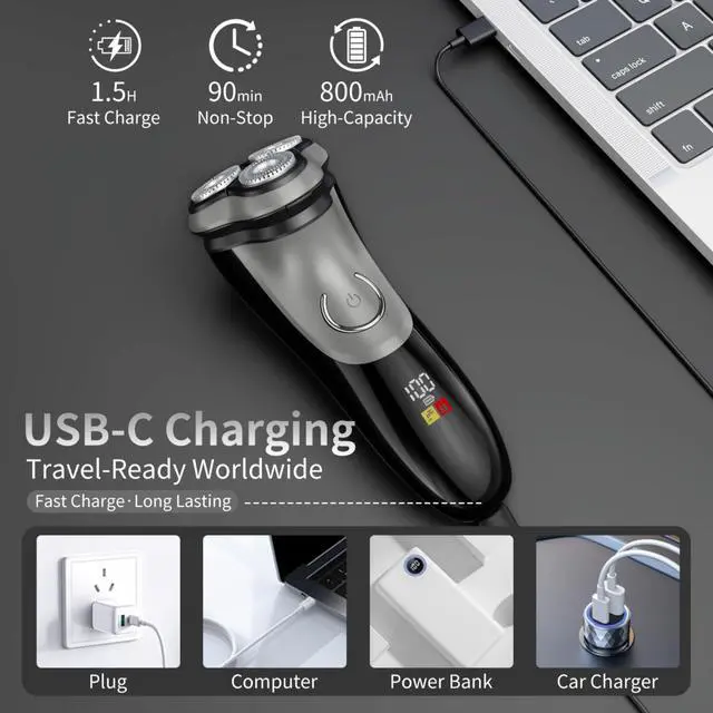 Fast Charging & LED Display: Charge the shaver fully in just 1.5 hours with the included Type-C USB cable. With over 90 minutes of shaving time on a single charge.