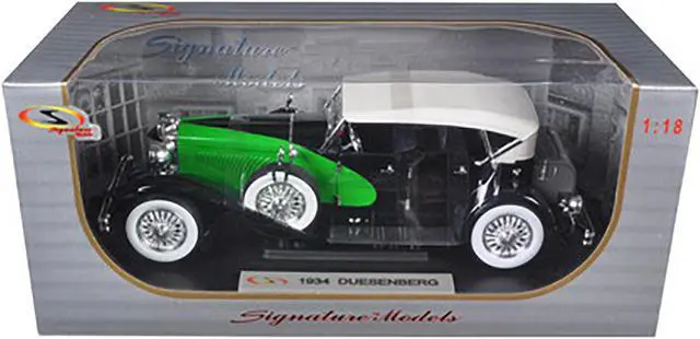 Brand new 1/18 scale diecast car model of 1934 Duesenberg Model J Black and Green with Cream Top die cast model car by Signature Models.