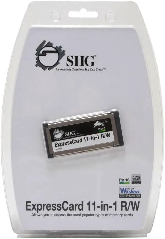 • neweggCompatible with 11 Types of Memory CardsThe SIIG CE-E01012-S1 ExpressCard card reader provides an ideal solution for easy and quick access to 11 types of memory cards including SD, miniSD, MMC, RS-MMC, xD, MS, MS Pro, MS Duo, MS Duo Pro, MaigcGate MS and MagicGate MS Pro.