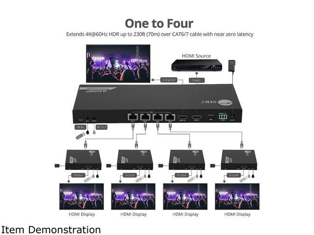 SIIG 1x4 HDMI Splitter Over Cat6 Extender with Loopout, IR, ARC & RS-232 CE-H27A11-S1