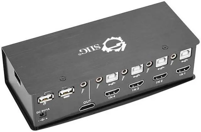 4-Port USB HDMI KVM SwitchThe SIIG CE-KV0111-S1 allows you to share an HDTV or display, USB keyboard & mouse and microphone between 4 USB/HDMI computer devices. You can switch between devices via front push button or IR remote.