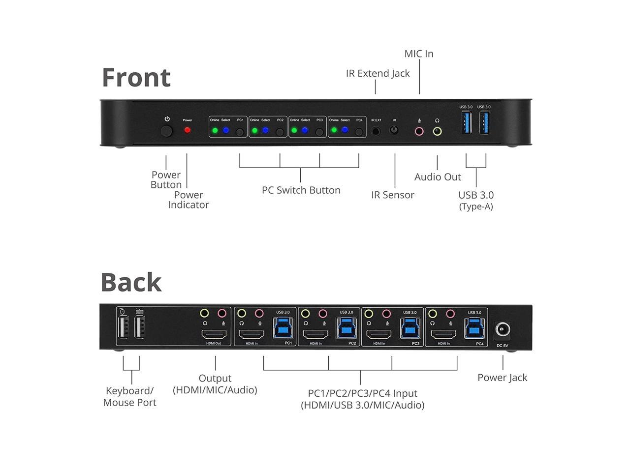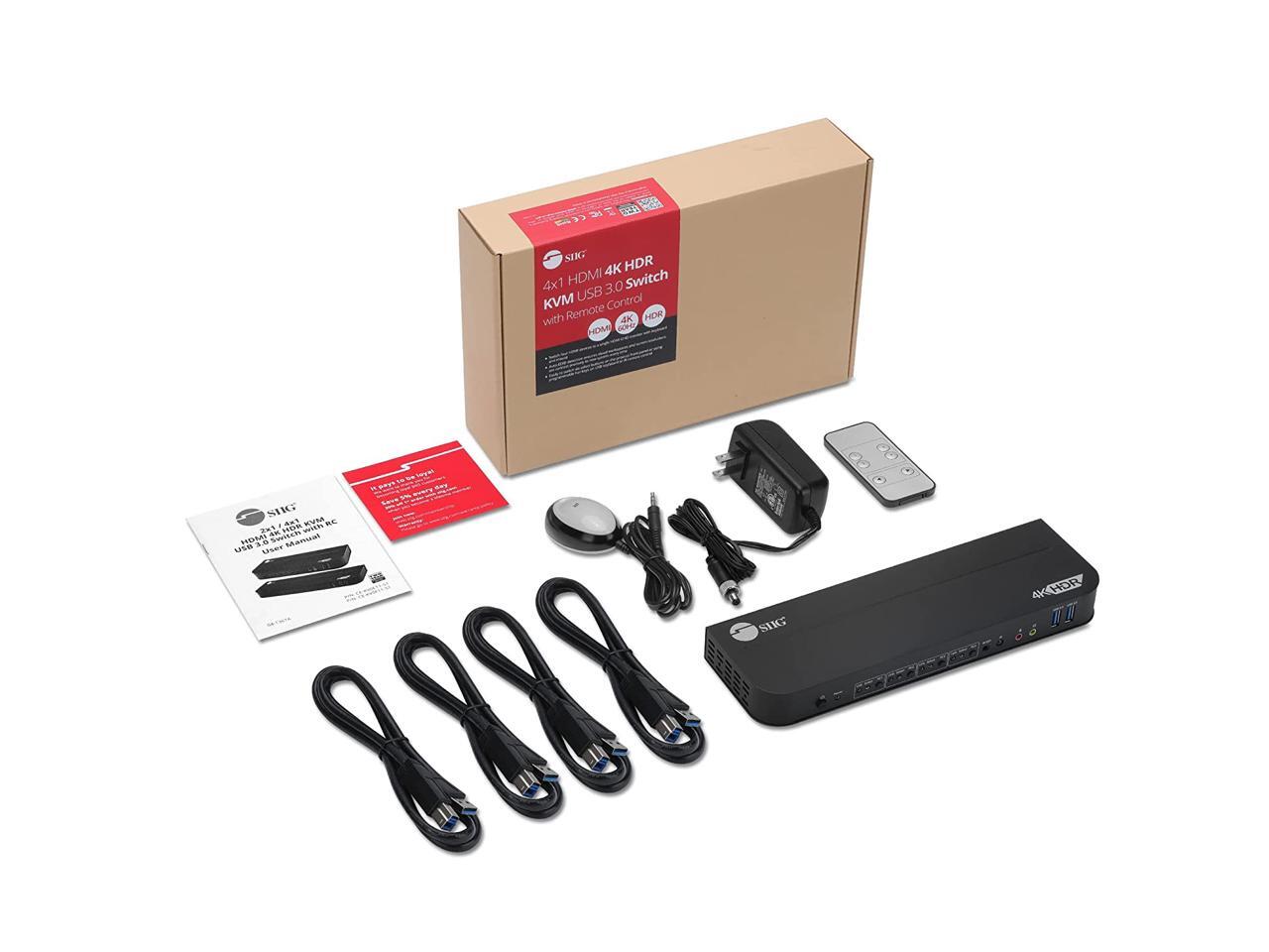 SIIG CE-KV0F11-S1 4x1 HDMI 4K HDR KVM USB 3.0 Switch with Remote Control