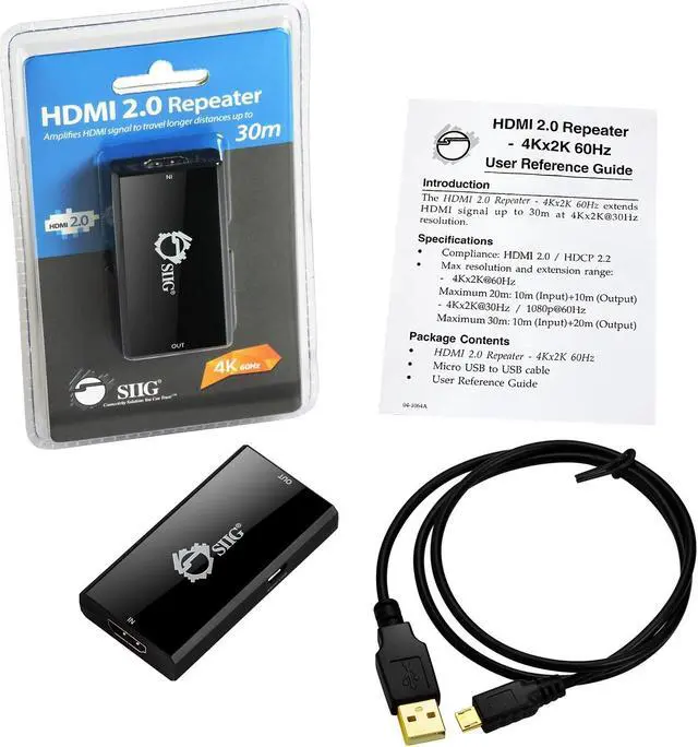 Contents: HDMI 2.0 Repeater - 4Kx2K 60Hz USB to Micro B Cable Installation