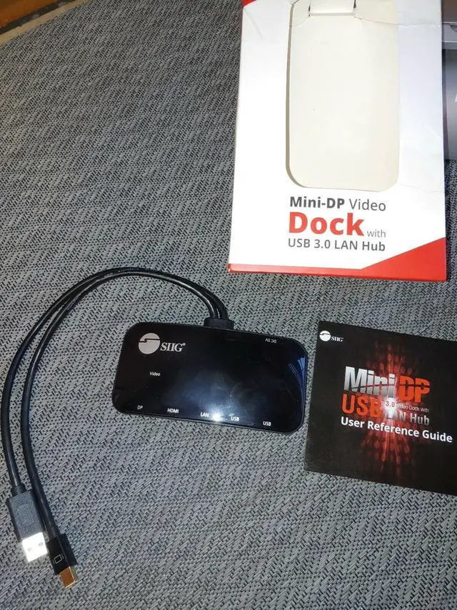Contents: Mini-DP Video Dock with USB 3.0 LAN Hub - Black 4 x Rubber Pad User Reference