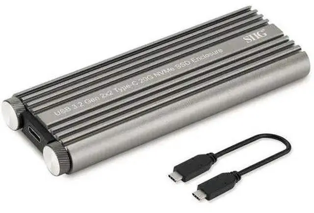 | Features | This ultra small enclosure easily adds fast M.2 (M key) PCIe NVMe SSD storage to your Windows or Mac computers through USB 3.2 Gen 2x2 USB-C port. Ultra-fast data transfer rate up to 20Gbps through USB 3.2 Gen 2x2 with UASP technology. Requires UASP compatible USB 3.2 Gen 2 2x2 host controller hardware along with Windows 10 and Windows 8 USB 3.2 host controller drivers. Compliant with SuperSpeed USB 20Gbps / 10Gbps / 5Gbps, High Speed 480Mbps, and Full Speed 12Mbps. Accommodates 2230, 2242, 2260, and 2280 form factor M-Key M.2 PCIe NVMe SSD. Note: Does NOT work with B-key M.2 PCIe NVMe SSDs or M.2 SATA SSDs. USB Type-C (USB-C) interface with reversible connection design supports non-directional plug-in connection. Compatible with PCIe 3.0 x4 specification and backward compatible with PCIe 1.0 and PCIe 2.0. Aluminum housing offers durability and excellent neat dissipation for long life and reliable performance. Ultimate SuperSpeed transmission allows you to enjoy unprecedented data transfer speed, saves times for large-capacity data transmission and improves efficiency working at the office or home. Convenient tool free design, easily installs your NVMe SSD without using a screw driver. Bus powered for extra portability, no need to take along a separate power adapter while on-the-go. Built-in LED indicates power and data transfer status. Plug-n-Play with no driver installation required. Includes USB-C cable for easy connection to notebook or laptop. |