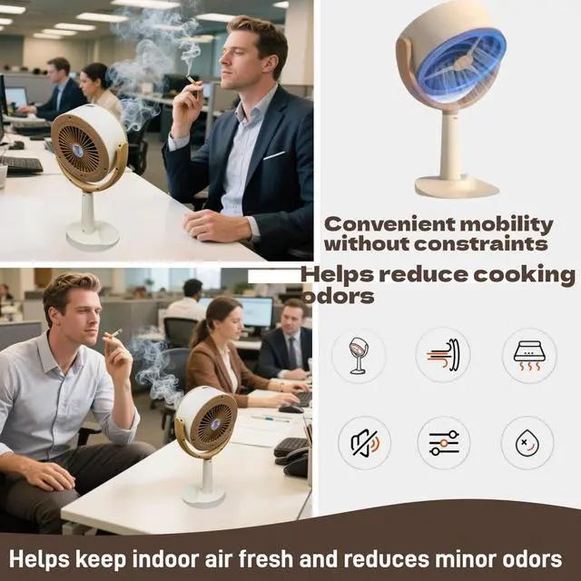 Looking to improve air quality in small spaces? This mini plug-in desktop air purifier is designed to fit comfortably in dorms, studios, RVs, and pet rooms. Its compact enough for nightstands or work desks without crowding your space. With no batteries or setup required, its ready to gojust plug it in and enjoy a fresher environment. The low-noise fan and adjustable airflow make it suitable for working, relaxing, or sleeping without distraction. Each unit includes five activated carbon filters that absorb smoke odor, pet smell, or mild kitchen fumes. Filters can be reused after air-drying, making this a low-maintenance, cost-effective choice for users needing portable air comfort in everyday settings. Whether youre a remote worker, frequent traveler, pet owner, smoker, or someone seeking more comfort in your indoor space, this compact air assistant is a reliable addition to bedrooms, workspaces, and on-the-go environments.