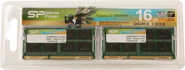 DDR3 1333The Silicon Power SP016GBSTU133N22 memory module is rated at 1333MHz with Cas Latency 9 timing to deliver up to 10.6GB bandwidth per channel to deal with the evolving needs of today's operating systems and applications.