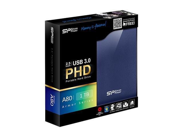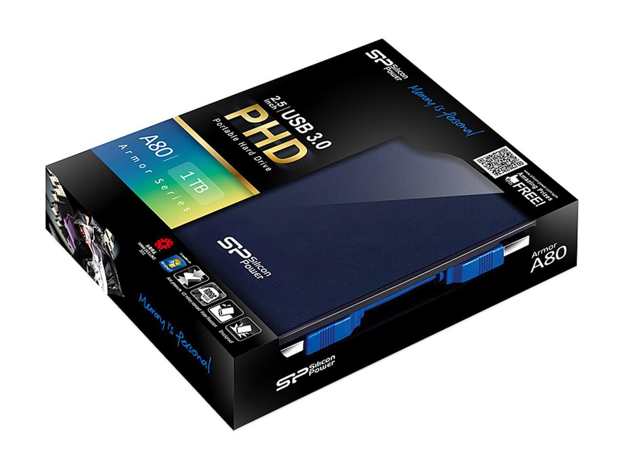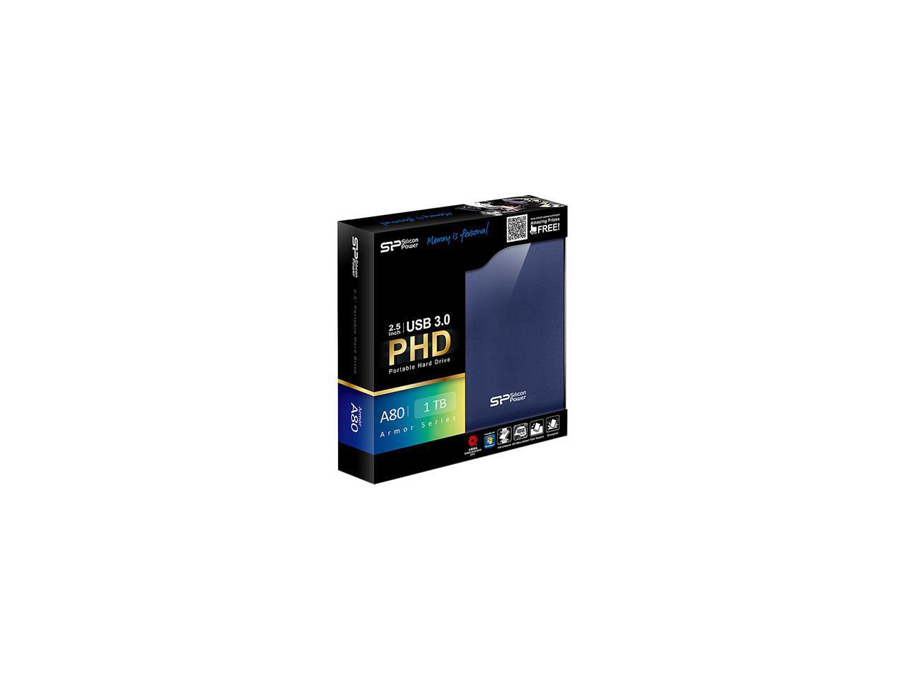 Silicon Power 1TB Armor A80 Portable Hard Drive USB 3.0 Model SP010TBPHDA80S3B Blue
