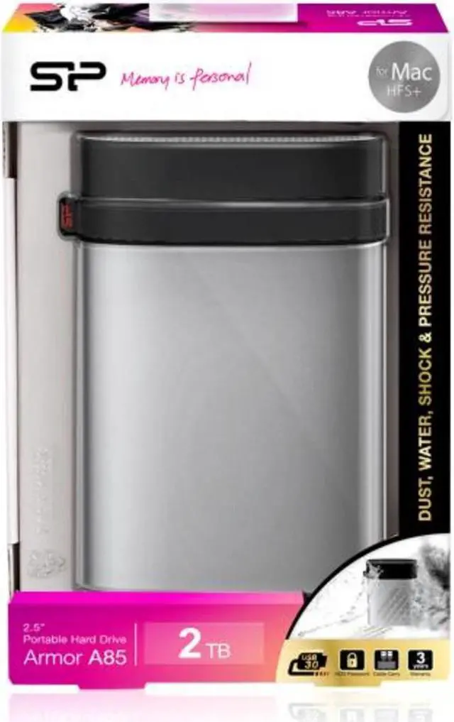 Silicon Power 2TB Armor A85M IP68 Waterproof and Shockproof Portable Hard Drive for Mac USB 3.0 Model SP020TBPHD85MS3S Silver